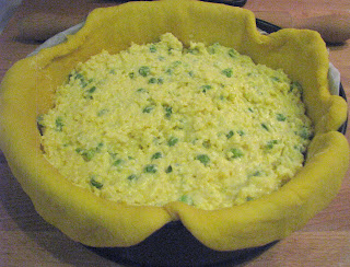 - Geri kalan bezelyeleri beşamel sos, yumurta sarısı ve peynirle karıştırdıktan sonra en üste yayın